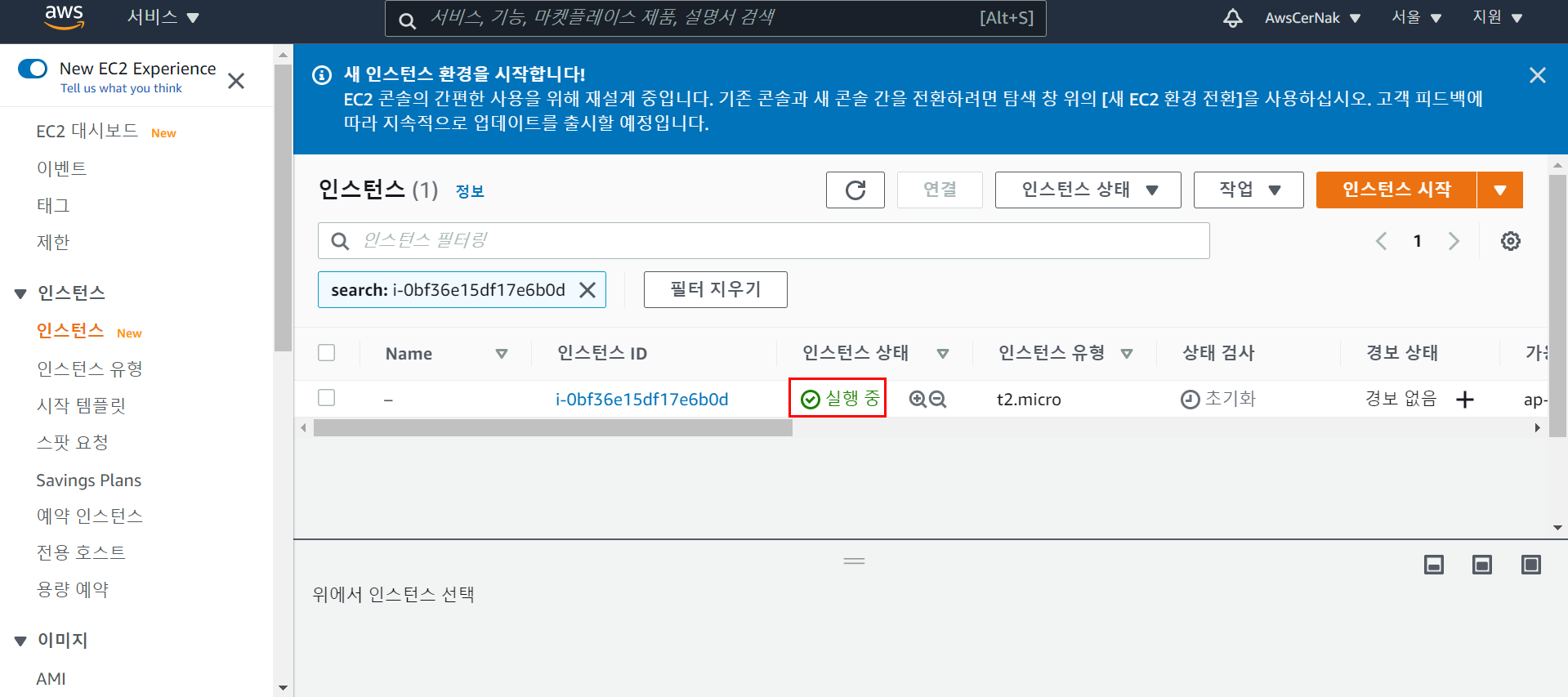 - 기본 사용자는 ec2-user이므로 ec2-user@를 수행한다.