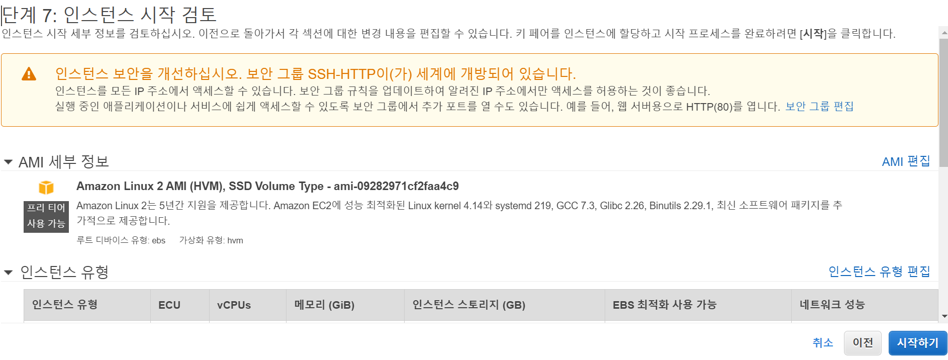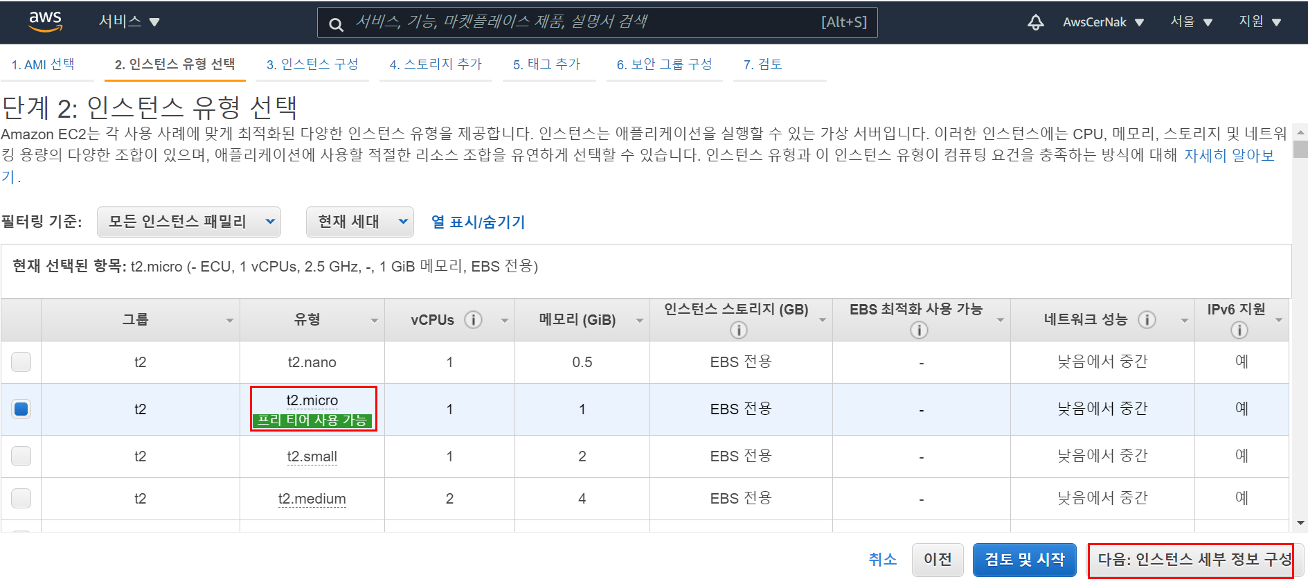 여기서는 T2.micro 저사양을 사용할 예정이다.