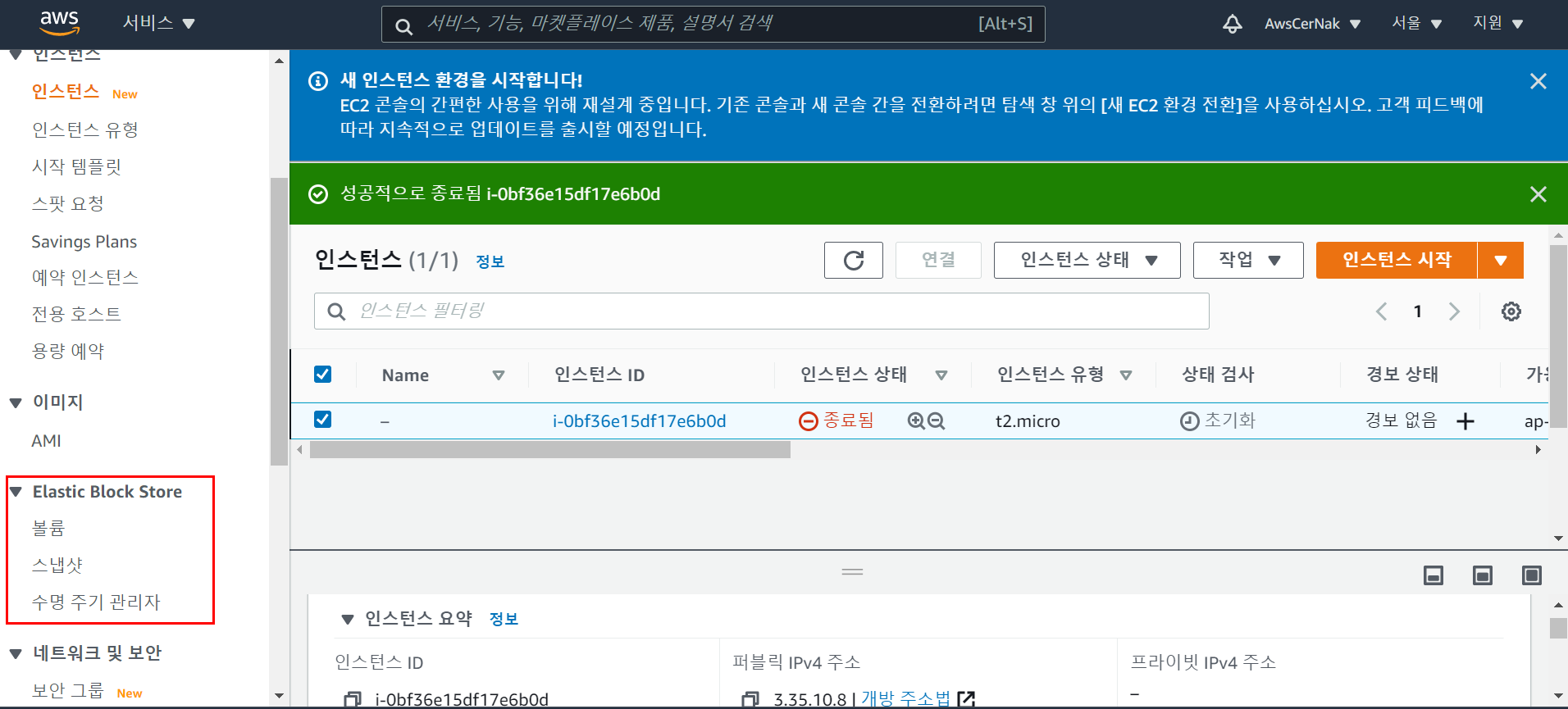EC2 Management Console에서 EC2 인스턴스와 EBS볼륨은 EC2 콘솔에 존재한다.