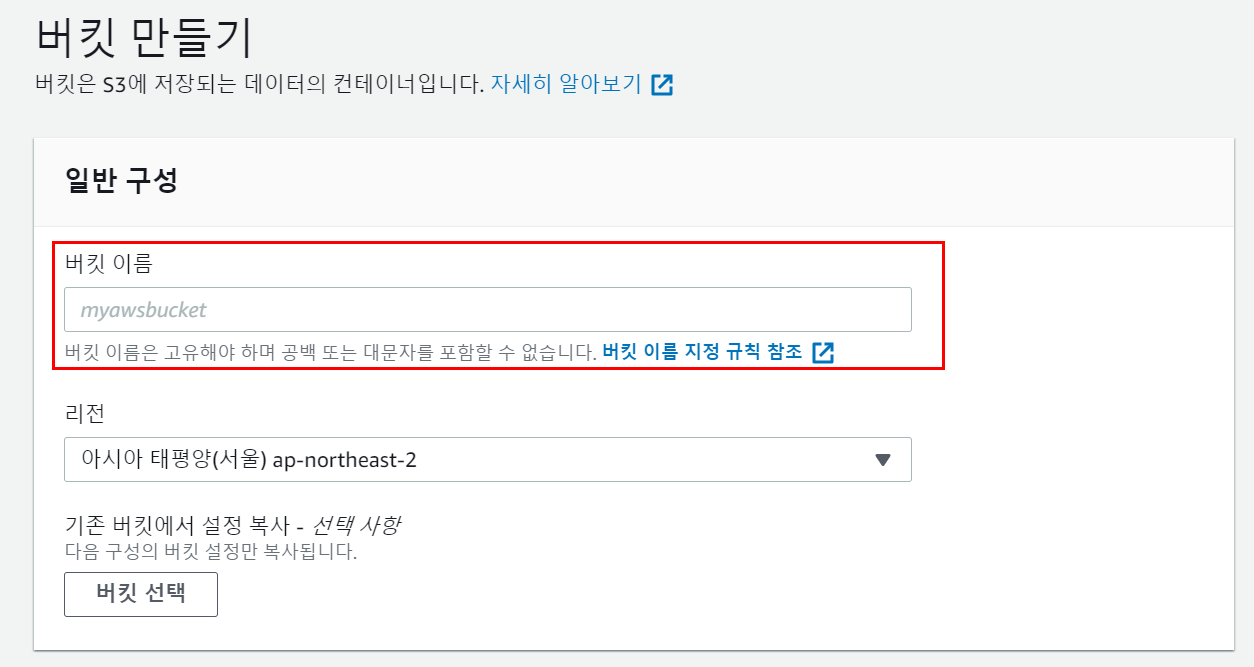 2. Amazon S3에서 데이터를 보관할 버킷을 생성할 수 있다.