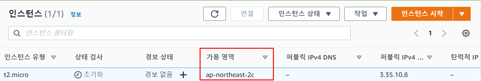 - 따라서 볼륨을 생성할 때 인스턴스가 ap-northease-2c에 있다면 볼륨도 동일한 가용영역에 생성해야 한다.